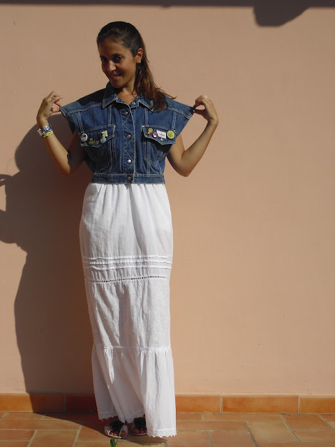 dress La robe di Sofì; giacca jeanz Laura Biagiotti vintage, Fiorucci, LuckyStone; flat shoes Camomilla, borsa in rettile fuxia regalo,pochette rosa e pochette verde vintage; spilla My creation!; anello in avorio regalo; bracciale catena B&C.